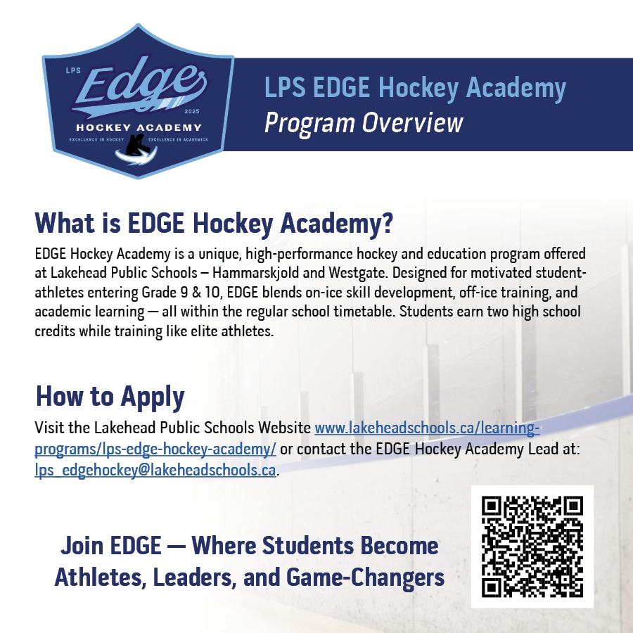 Lakehead Public Schools is exploring the possibility of launching an EDGE Hockey Academy pilot program for motivated Grade 7 and…